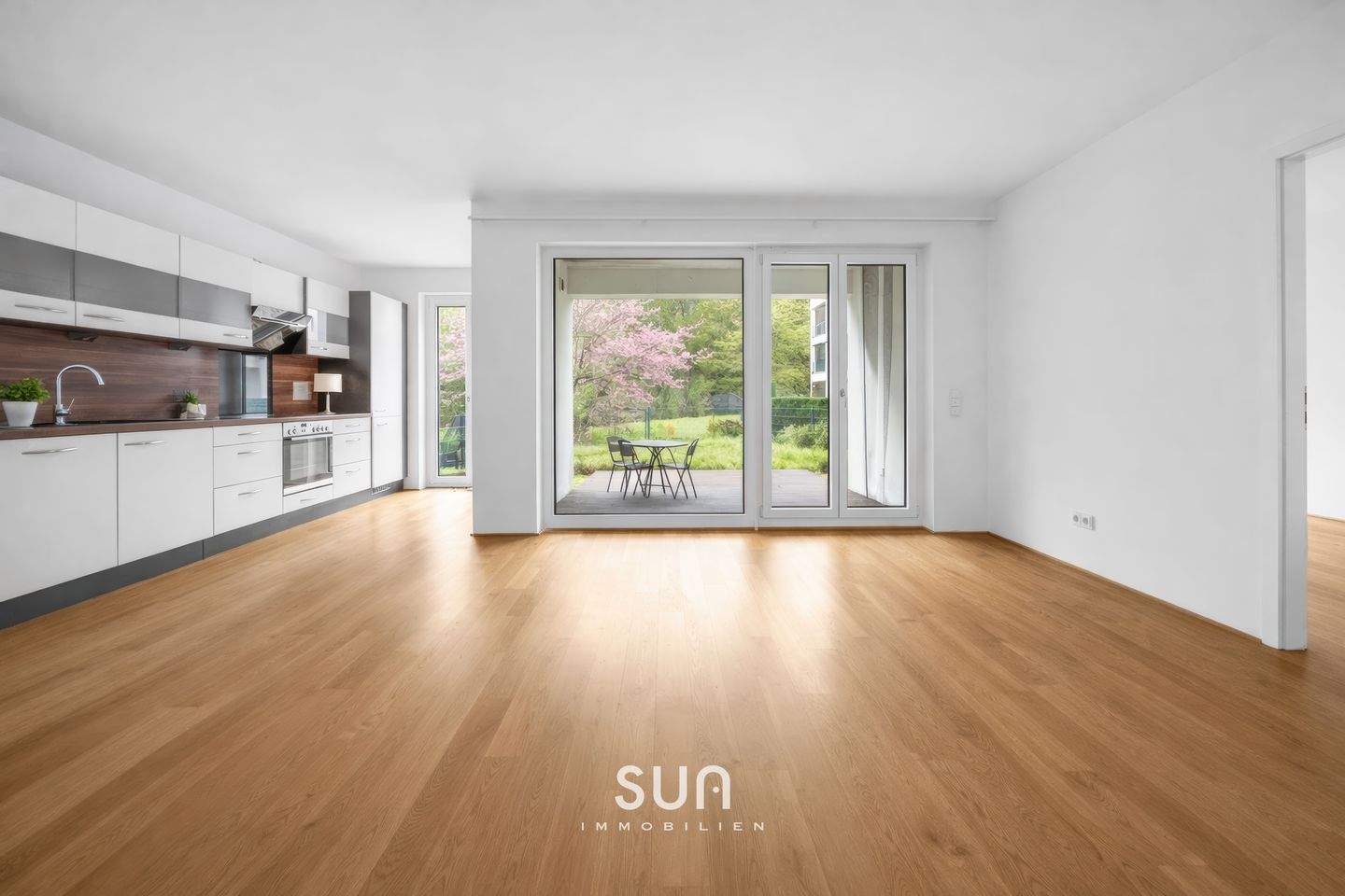 OFFENER KÜCHEN-UND WOHNBEREICH (Beispieleinrichtung) - MODERN WOHNEN IN LANGEN - 2-Zimmer-Erdgeschosswohnung mit Privatgarten