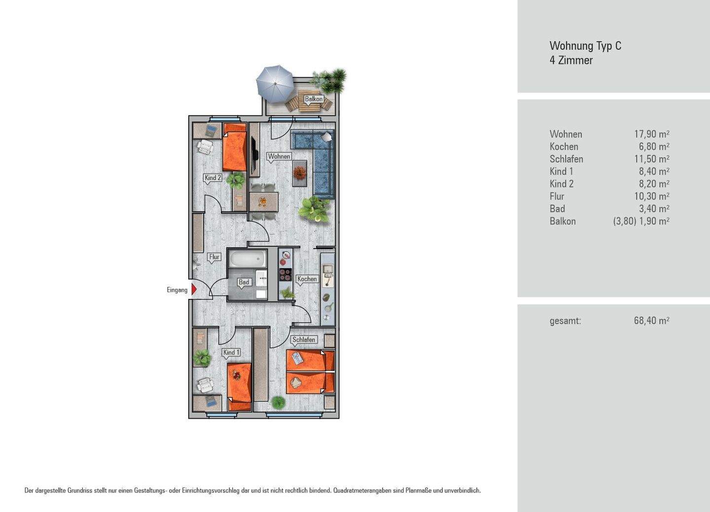 | Wohnfläche: | ca. 68,40 m² |