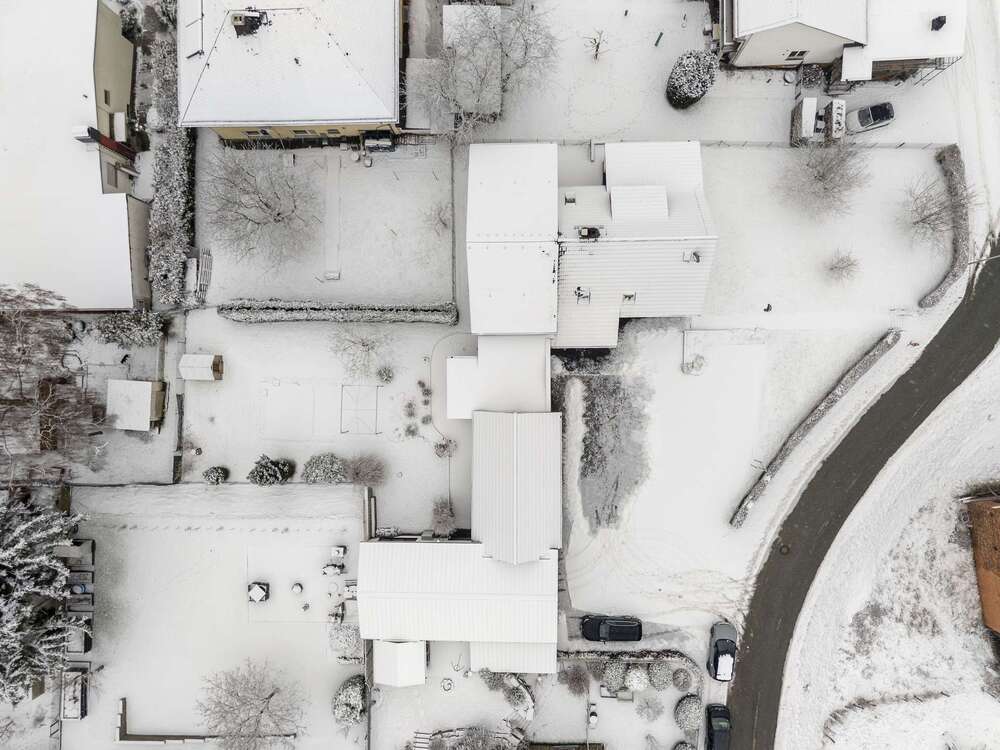 Zur Immobilie gehören drei Garagen sowie rund zehn Außenstellplätze, die ausreichend Platz für Fahrzeuge bieten. Die Ölheizung stammt aus 1989.