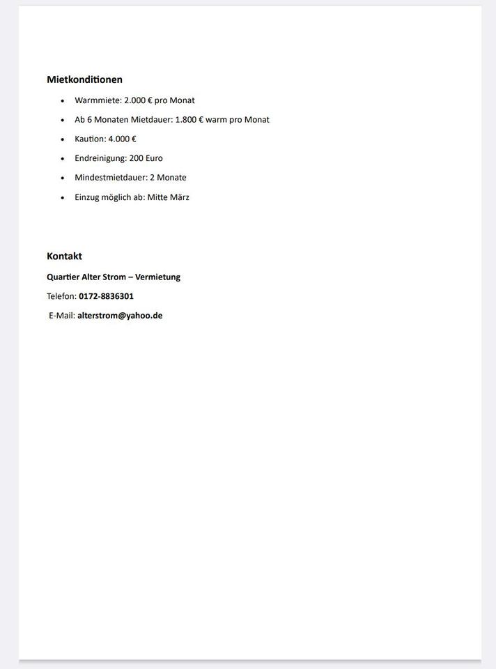 Angebot zur Miete