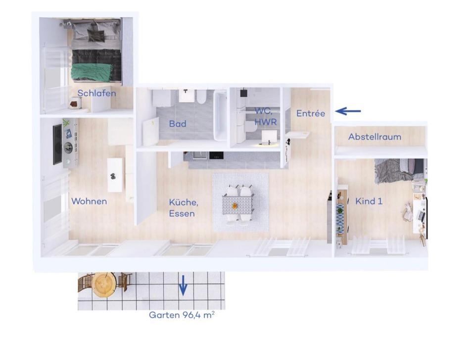 Hell & neuwertig: EG-Wohnung (2022) mit 100 m² Garten, Stellplatz