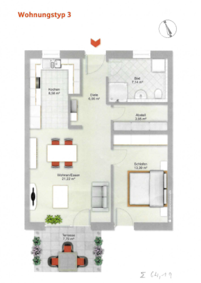 Zimmeranzahl :2 Gesamtgröße :ca. 62,00 m² Stand vom :19.02.2026