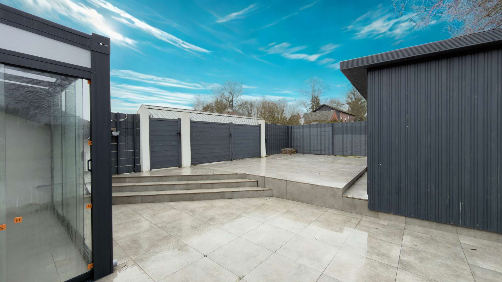 -Große Terrasse mit rutschfesten Fliesen