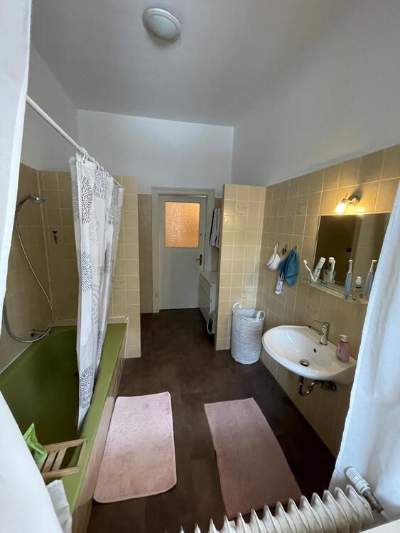 Dein Zimmer ist das kleinere der beiden WG-Zimmer und ca. 12 qm groß. Durch die sehr hohen Decken wäre ein Hochbett problemlos möglich. Platz für einen Kleiderschrank gäbe es noch im Flur. Außerdem steht viel Stauraum im Badezimmer zur Verfügung. Das Zimmer wird momentan noch als Büro genutzt. Es wird unmöbliert vermietet.