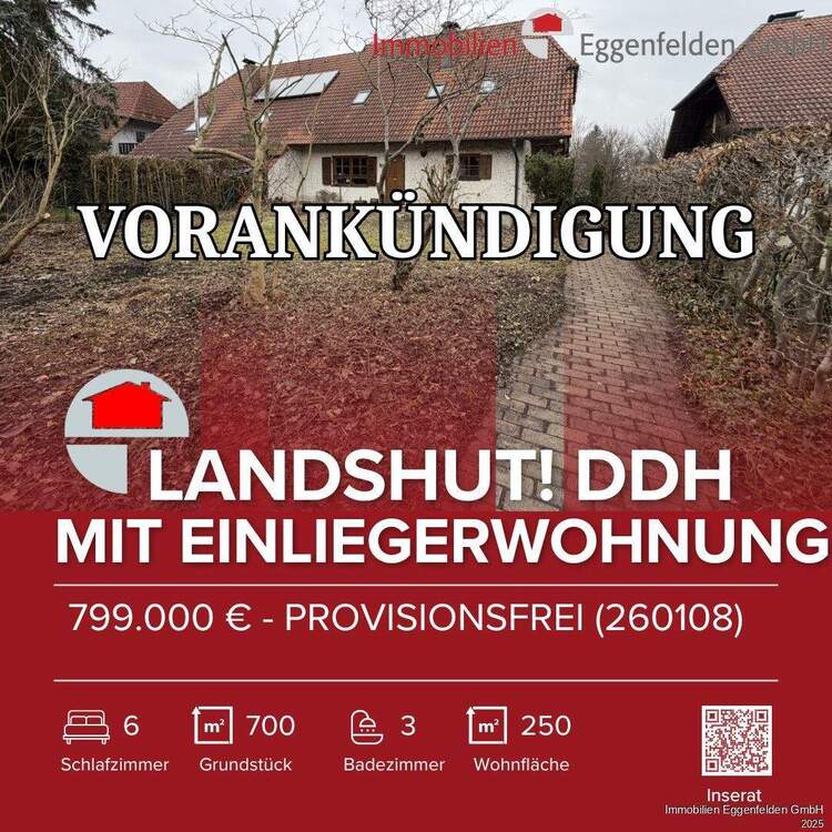 VORANKÜNDIGUNG Landshut Stadtteil Berg! PROVISIONSFREI! DHH mit Einliegerwohnung