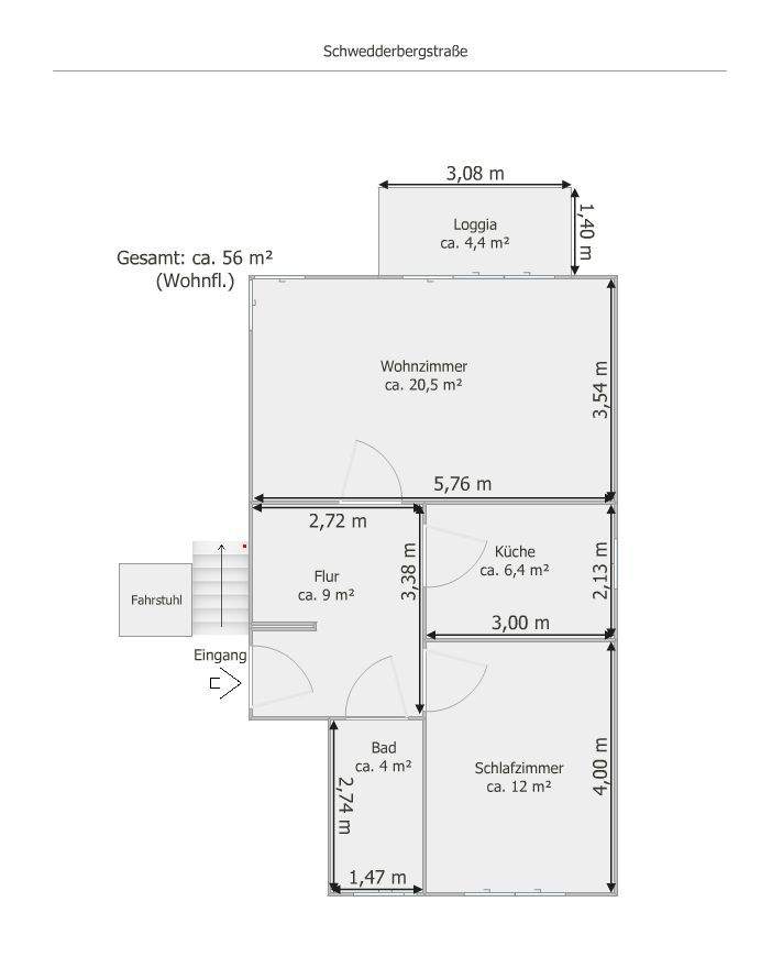 | Wohnfläche: | ca. 56,00 m² |