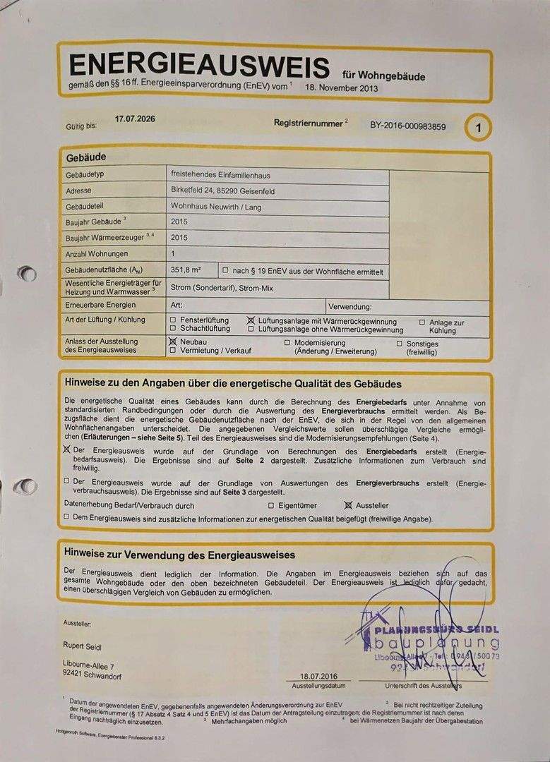 Energieausweis: Energiebedarfsausweis