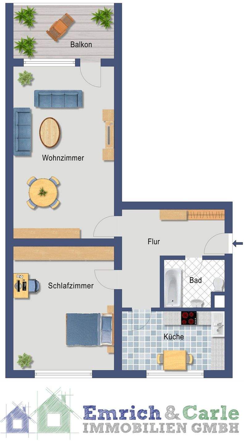 Sie befinden sich hier: Top gepflegt: 2-Zimmer-Wohnung mit Balkon in Rüsselsheim in Rüsselsheim - 262HRY7FB75T | 1A-Immobilienmarkt.de