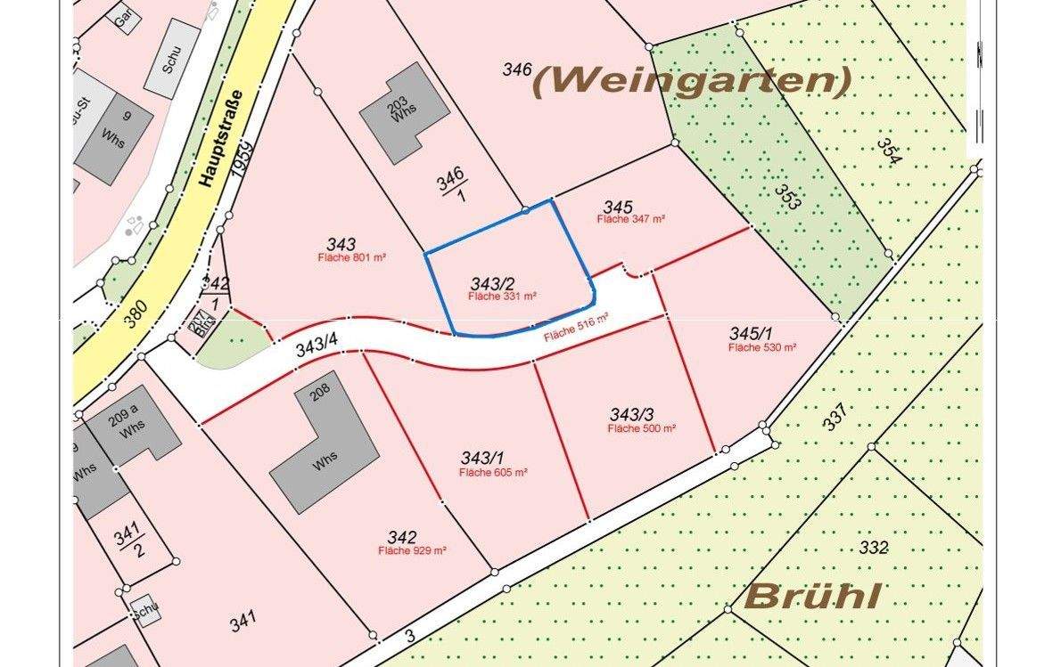 • Lageplan Flst. 343-2 mit Grundstücksmarkierung -