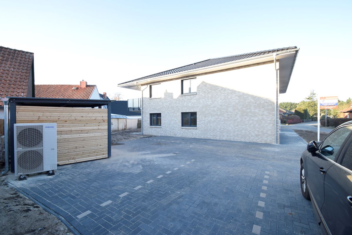 Zur Wohnung gehört 1 Stellplatz auf dem Grundstück. Außenanlagen und Garten sind angelegt, zudem führt eine Pflasterung einmal um das Haus und sorgt für kurze Wege.