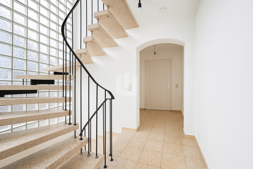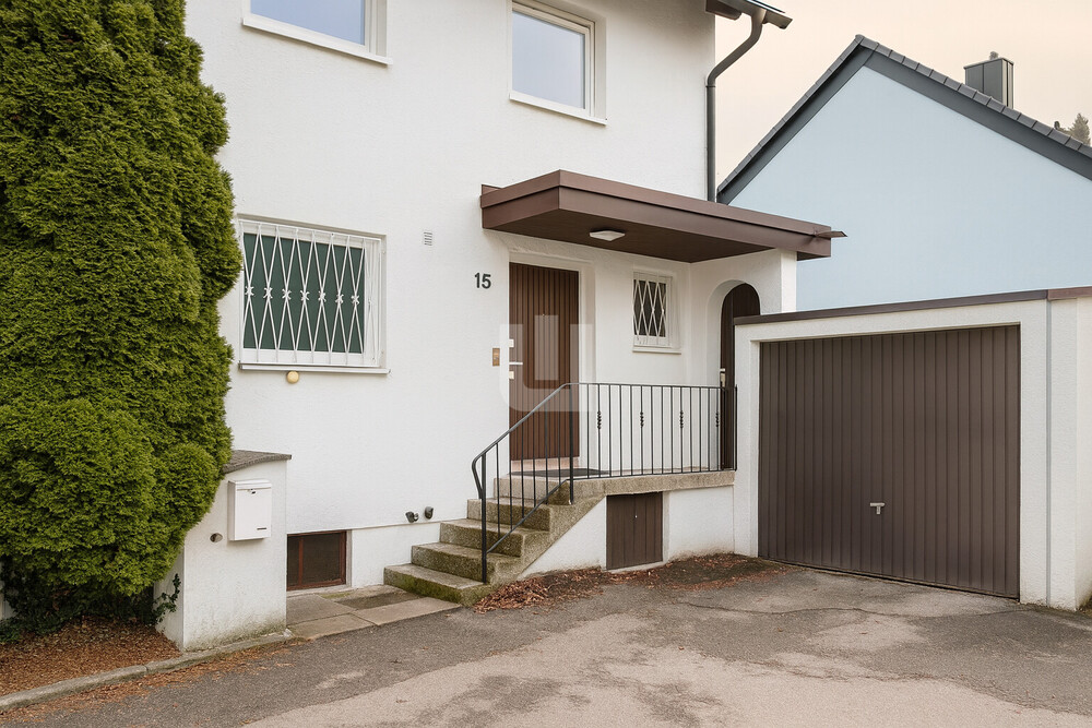 Außenanlagen: + Treppenhaus mit Glasbausteinen + Sonnige Terrasse + Großer Garten mit Süd-West-Ausrichtung + Einzelgarage vor dem Haus u.v.m.