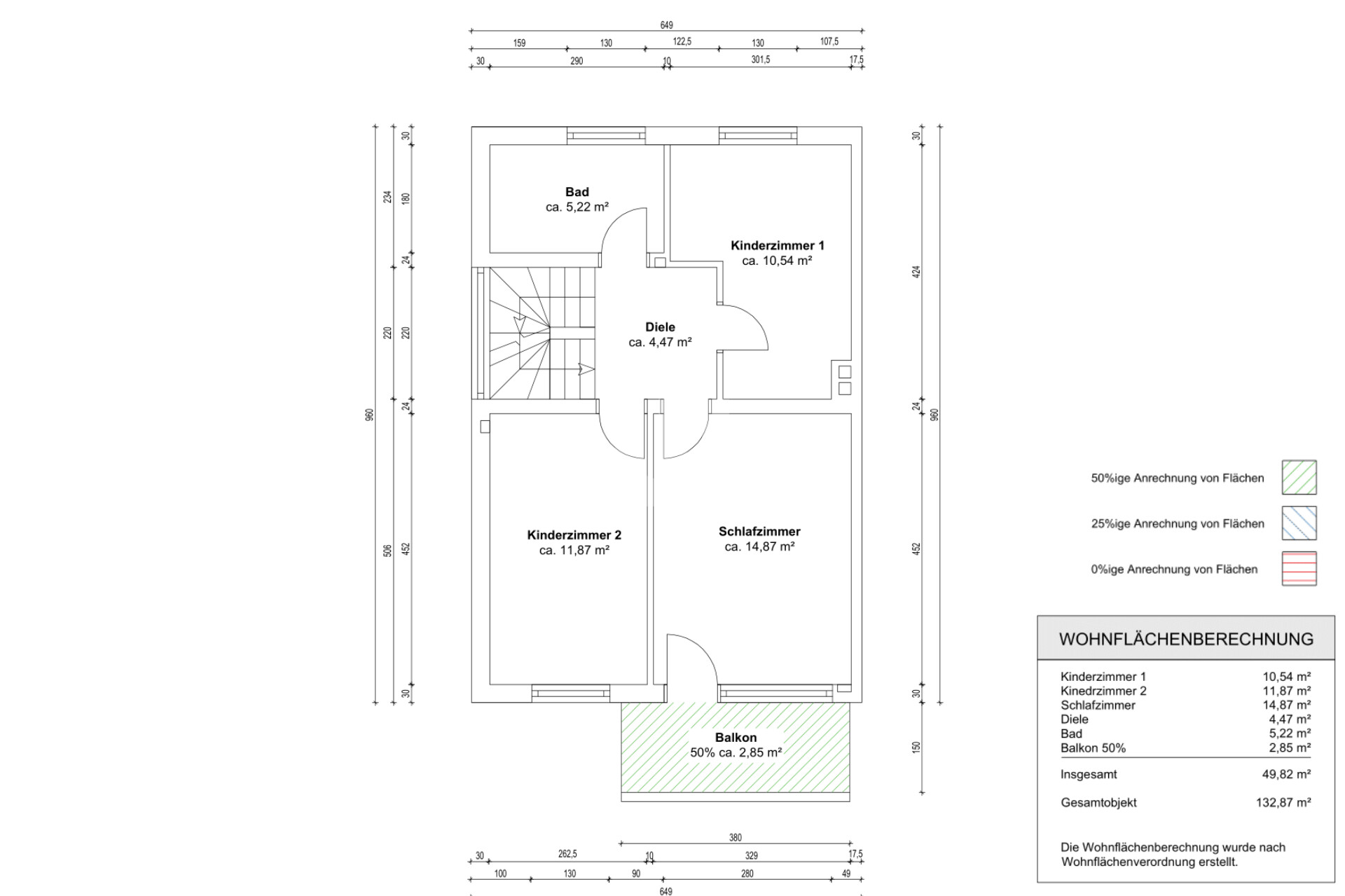 Obergeschoss: + Elternschlafzimmer mit Balkonzugang + 2 Kinderzimmer in unterschiedlicher Größe + Tageslichtbad mit Badewanne
