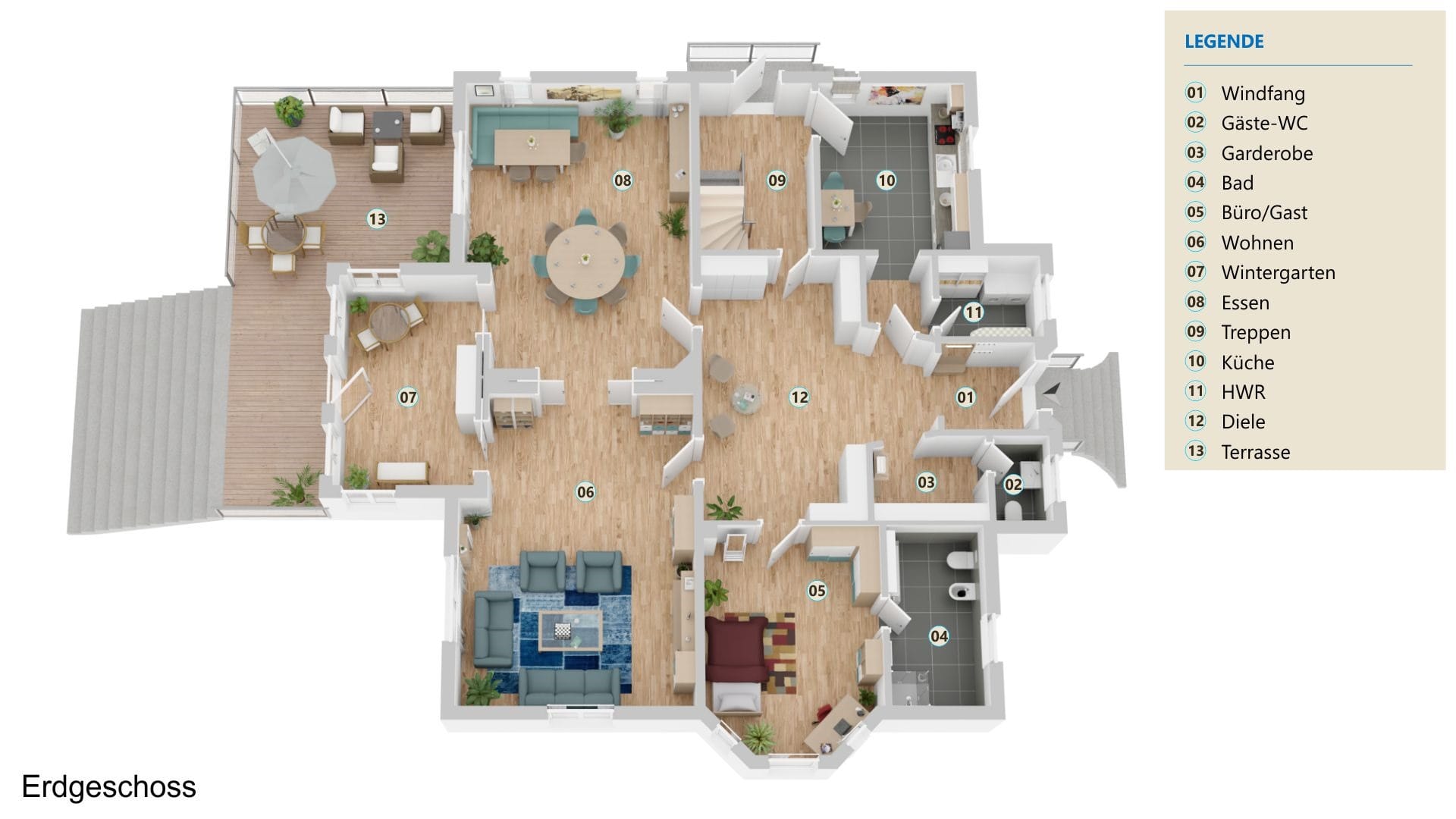 Mit einer Gesamtwohnfläche von ca. 469 m² erwartet Sie auf jeden Fall viel Raum, um Ihre persönlichen Wohnideen umzusetzen und Wirklichkeit werden zu lassen.