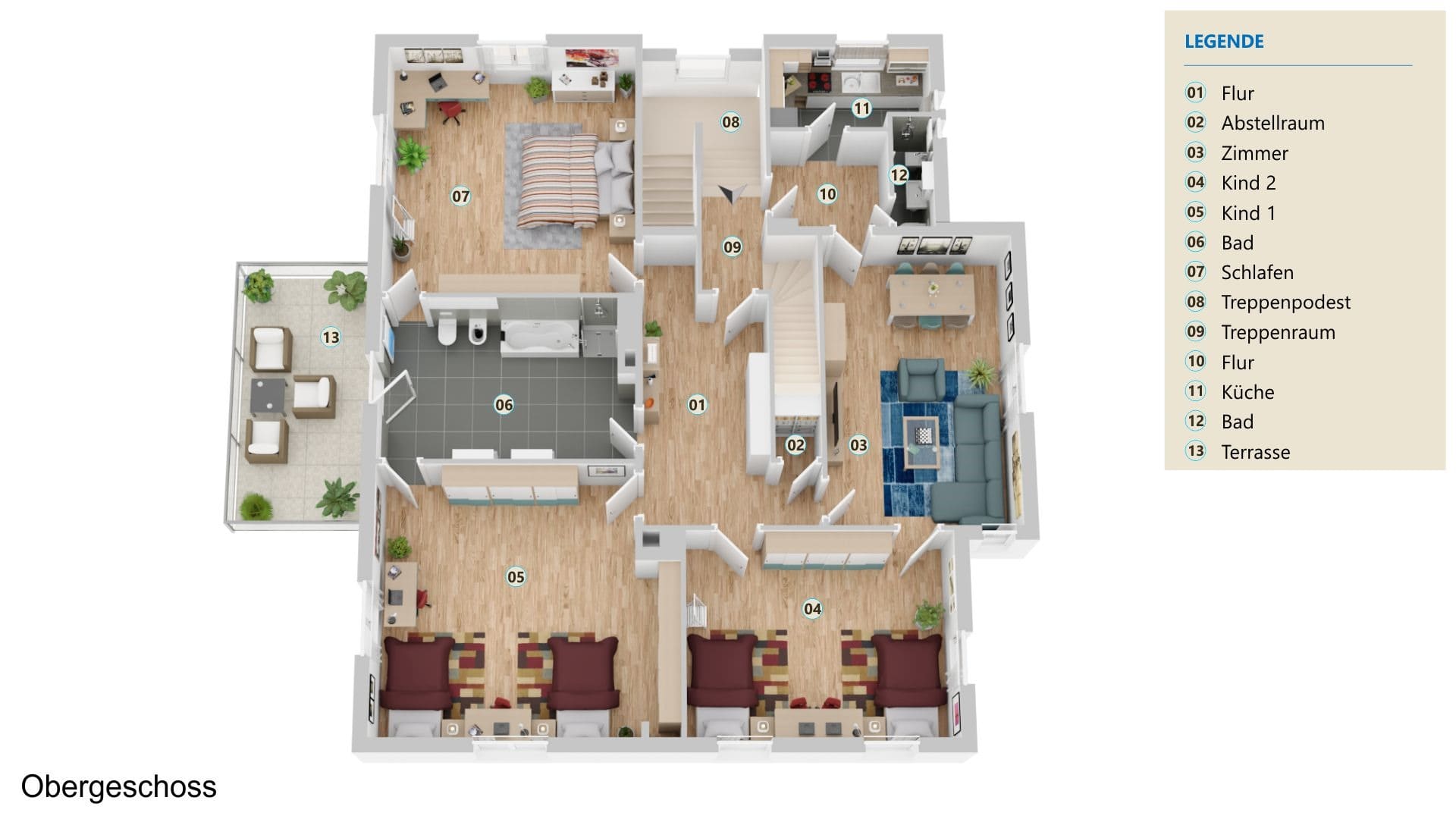 Das Obergeschoss bietet Ihnen auf ca. 158 m² Wohnfläche 4 Zimmer, Küche und 2 Bäder. Hier wäre auch eine Nutzung mit zwei getrennten Wohneinheiten denkbar.