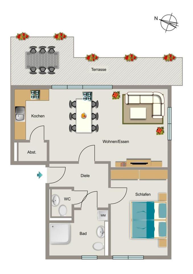 Sie befinden sich hier: Bei VIVAWEST die Sonnenstrahlen auf der eigenen Terrasse genießen. in Brühl - 3330995004-203-1158 | 1A-Immobilienmarkt.de
