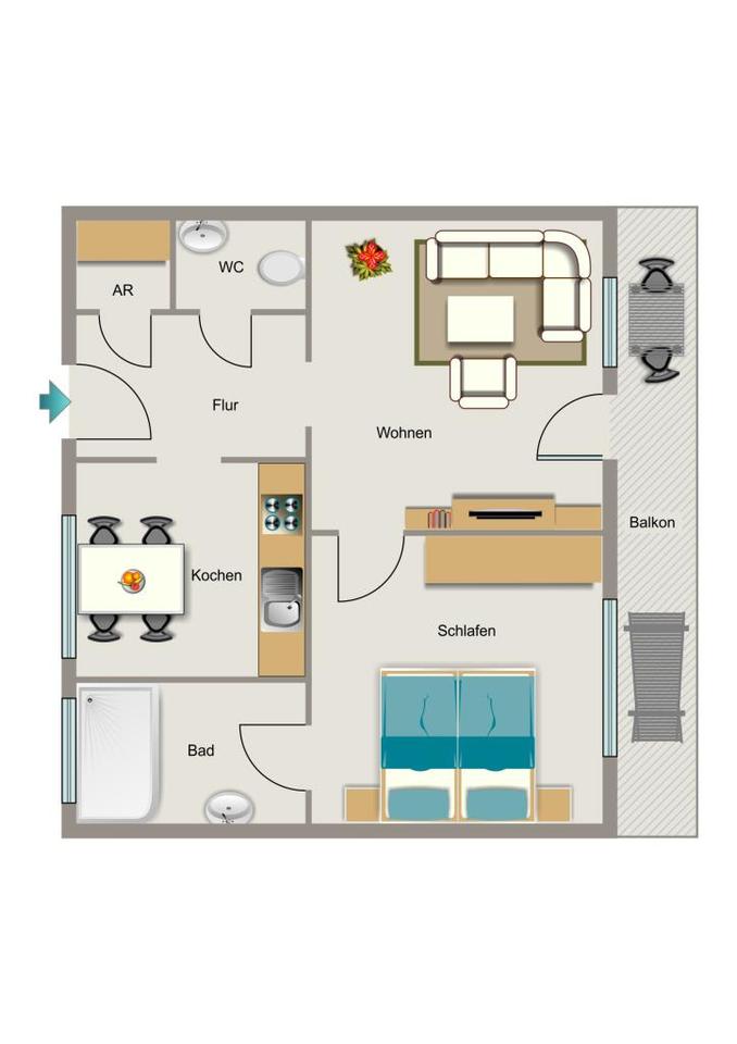 Zimmeranzahl :2.5 Gesamtgröße :ca. 46,67 m² Stand vom :28.02.2026