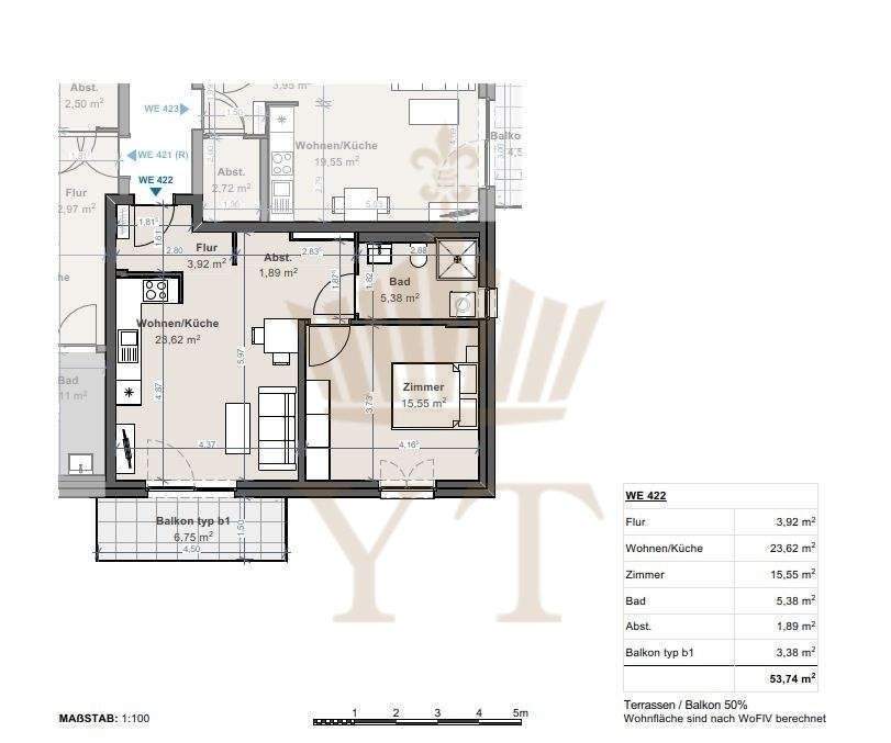 | Wohnfläche: | ca. 53,70 m² |