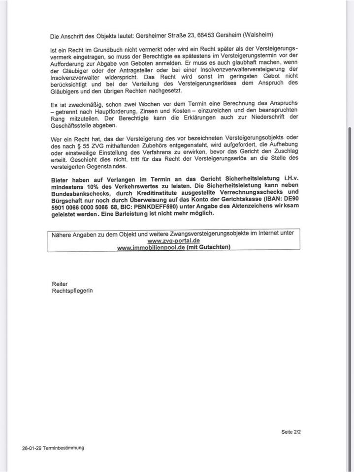 Zwangsversteigerung 01.04.2026 - 85.500,00 EUR Kaufpreis, ca.  110,00 m²
