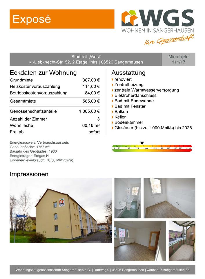 Sie befinden sich hier: Renovierte 3-Raum-Wohnung mit Balkon * Parkplatz vorm Haus in Sangerhausen - 3331129757-203-2315 | 1A-Immobilienmarkt.de