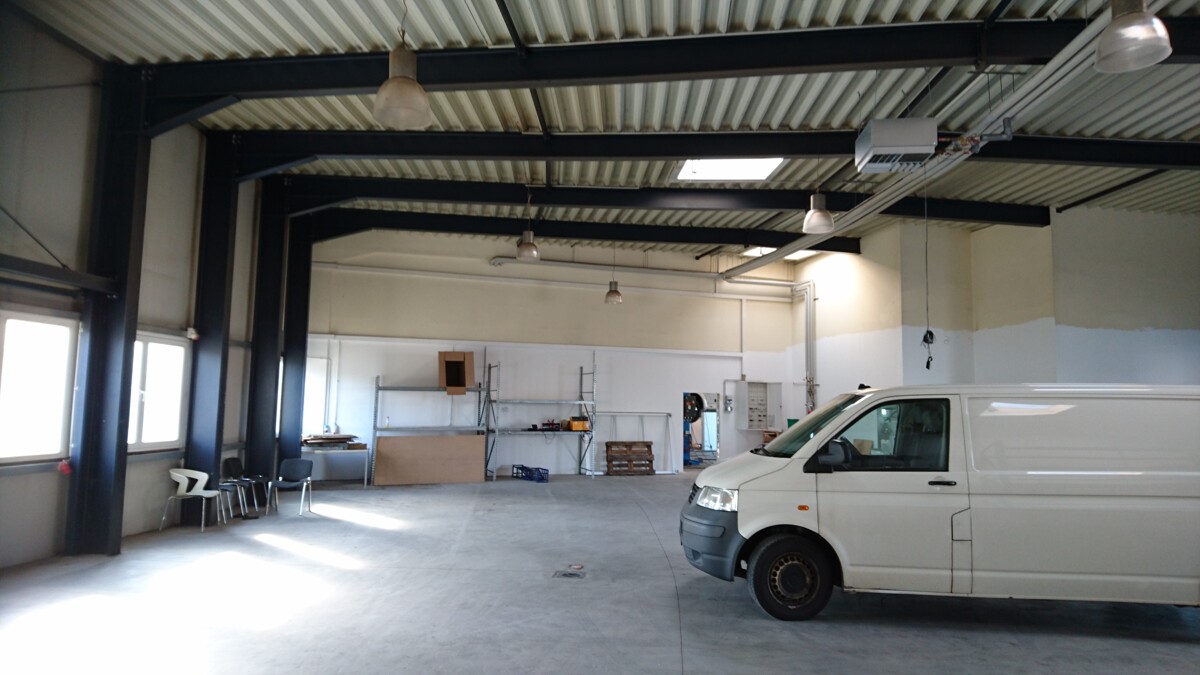Die Halle ist mit robusten Betonböden ausgestattet und eignet sich ideal für Lager-, Logistik- oder leichte Produktionszwecke. Mehrere Rolltore gewährleisten eine komfortable Anlieferung sowie einen reibungslosen Warenumschlag.