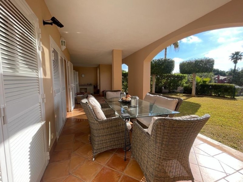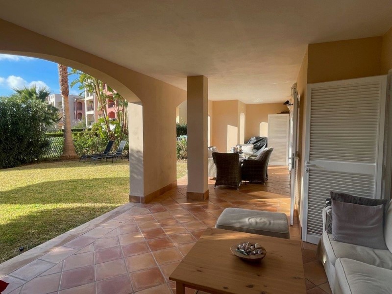 Die Wohnfläche beträgt 130 m2 zzgl. Einer 41 m2 großen, überdachten Terrasse und einem 98 m2 großen, umzäunten Garten mit automatischer Bewässerung. Das Apartment bietet auf einer Ebene einen großen Wohn-Essraum mit Zugang zur Terrasse, 2 Schlafzimmer mit 2 Bädern en Suite, ein Gäste-WC und eine komplett ausgestattete Einbauküche mit Wirtschaftsraum.
