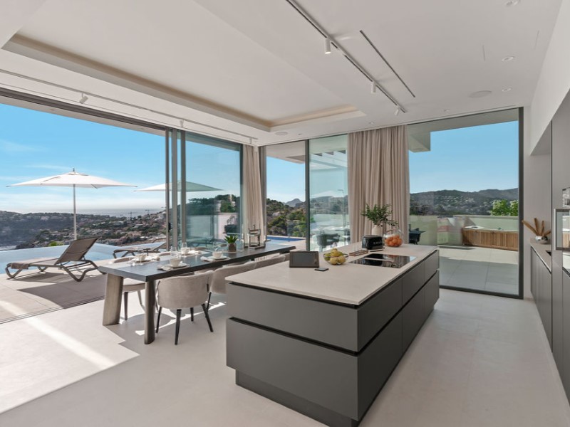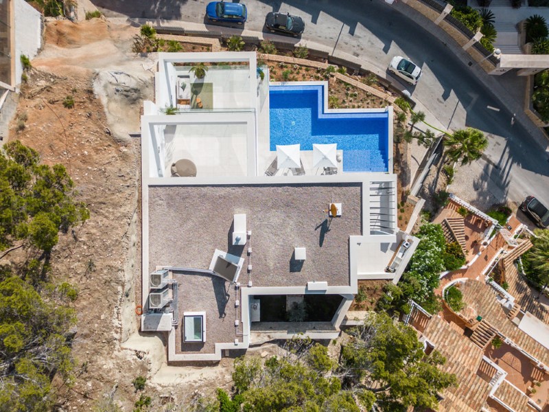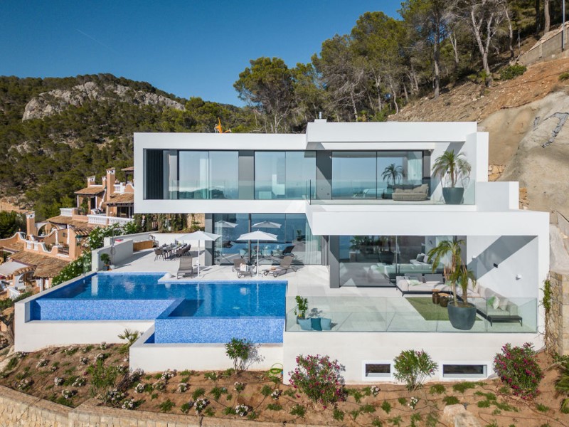 Neu gebaute Luxusvilla an einem der höchsten Punkte von Cala Llamp, Port Andratx, im Südwesten Mallorcas.