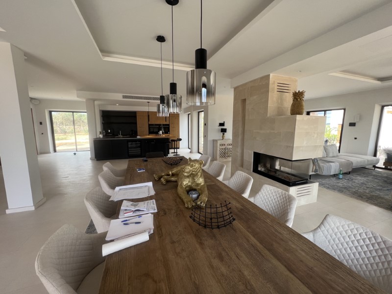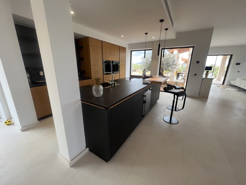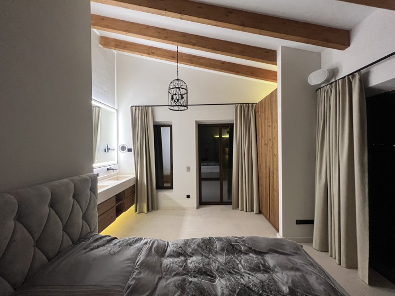 Die luxuriöse Finca hat ca. 16.000 m² Grundstück, 600 m² Wohnfläche und 300 m² an Terrassen und Balkonen. Das Haus ist voll möbliert, modern und hochwertig ausgestattet. Es gibt 6 Schlafzimmer mit Einbauschränken, Joop-Betten und Bädern en-suite, einschließlich hochwertiger Bettdecken, Bettwäsche und ca. 200 Vossen-Handtüchern. Insgesamt gibt es 7 Badezimmer mit mattschwarzer Axor-Badausstattung, Heizung und maßgefertigten Marmorwaschbecken. Die Designerküche ist komplett ausgestattet mit 2 Geschirrspülern, 2 Kühlschränken, 2 Öfen und 1 Weinkühlschrank. Das Haus verfügt auch über eine Waschküche mit 2 Waschmaschinen und 2 Trocknern und einen klimatisierten Weinkeller für 400 Flaschen Wein.