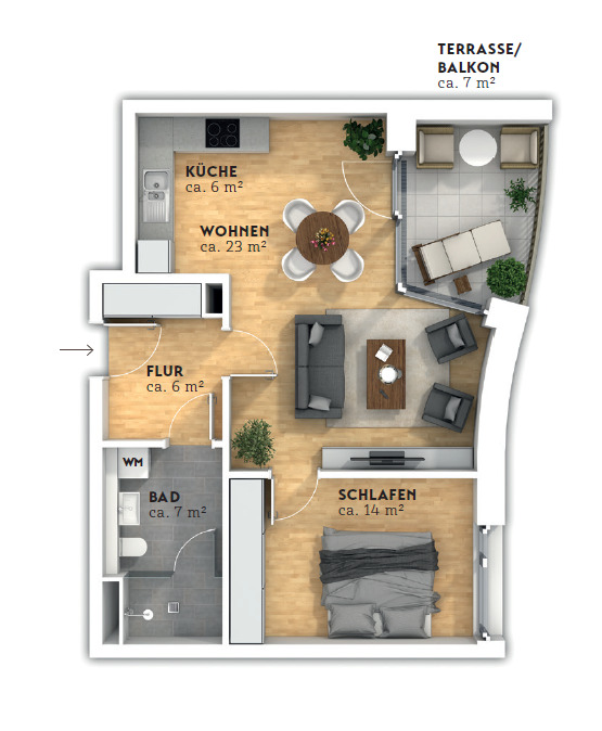 Zimmeranzahl :2 Gesamtgröße :ca. 61,52 m² Stand vom :26.02.2026