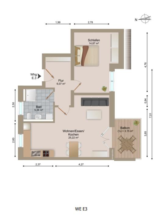 Zimmeranzahl :2 Gesamtgröße :ca. 54,57 m² Stand vom :22.02.2026