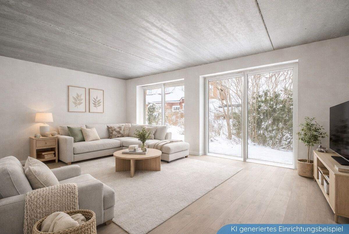 • Wohnbereich mit offener Küche - Beispielabbildung einer Referenzimmobilie des Bauträgers -