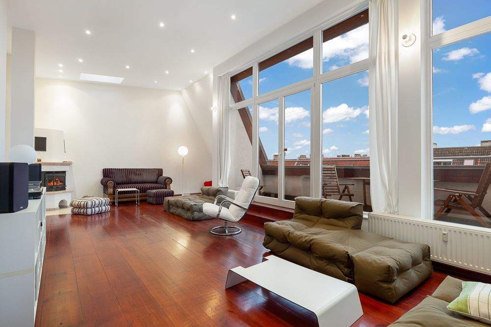 Wohnbereich (3,80m Deckenhöhe) - Charmantes Dachgeschoss im beliebten Gleimviertel in Berlin - Prenzlauer Berg
