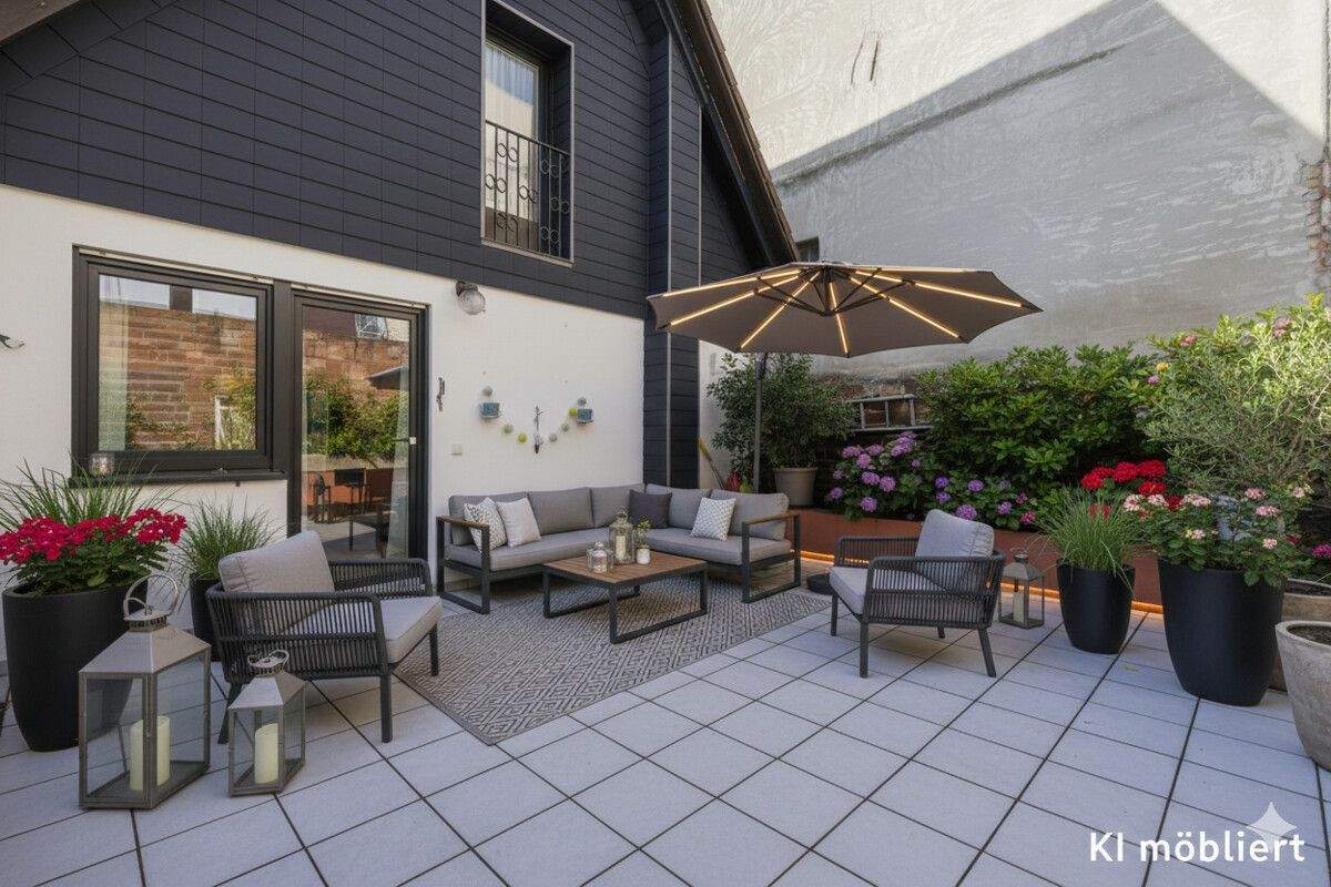 • Terrasse - KI möbliert - Mehrfamilienhaus, Wohnhaus mit 188,60 m² in Karlsruhe / Knielingen zum Kaufen