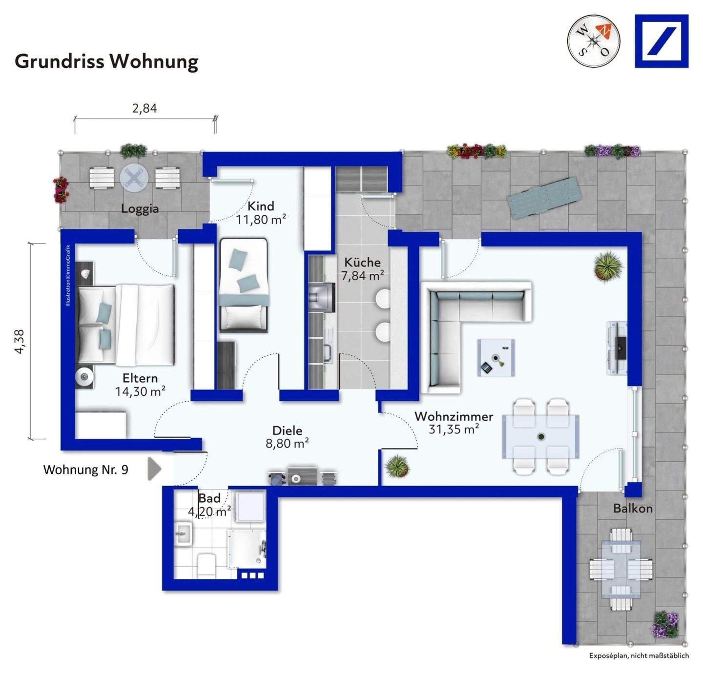 • Grundriss 3-Zimmer-Wohnung -