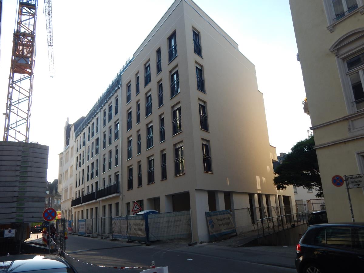 Wohnen in der Innenstadt unmittelbar an der Porta bzw. Beginn der Fußgängerzone. Attraktive Penthousewohnung mit tollem Stadtblick in einer der gefragtesten Lagen von Trier, mitten im Zentrum. In dieser exponierten Lage sind zwei Mehrfamilienhäuser mit altersgerechten Eigentumswohnungen mit moderner Technik und guter handwerklicher Ausführung entstanden. Die Beheizung erfolgt über eine moderne Wärmepumpe mit Erdwärme. Die Warmwasserbereitung erfolgt über wohnungsbezogene Frischwasserstationen. Das Angebot bezieht sich auf die helle Penthousewohnung 18 im Maisonettestil. Besonderheit dieser Wohnung ist, dass innerhalb der Wohnung der Aufzug weitergeführt wird, so dass die obere Wohnebene auf Wunsch ebenfalls mit dem Aufzug angefahren werden kann. Die Wohnung besteht in der unteren Wohnebene aus dem Eingangsbereich mit Garderobe und Diele, dem Schlafraum 1 mit Ausgang auf die umlaufende Dachterrasse, dem Bad mit Fenster sowie dem Kinderzimmer/Büro ebenfalls mit Ausgang auf die Dachterrasse. Sie erreichen die obere Wohnebene wahlweise über die Treppe bzw. den behindertengerechten Aufzug. Hier befindet sich der offene Wohn/Essbereich mit Kochen (mit Einbauküche) und Ausgang auf die Dachterrasse sowie das Gäste-WC. Die Wohnung hat einen besonderen Flair. Die Wohnfläche beträgt ca. 128 m². Der Wohnung ist kurzfristig beziehbar. Der Wohnung ist ein Kellerraum im Untergeschoß zugeordnet, was über den Aufzug erreichbar ist. Zur Wohnung gehören ein Stellplatz im Garagensystem sowie ein Außenstellplatz, die gegen einen Mehrpreis von jeweils 30.000 EUR erworben werden können.