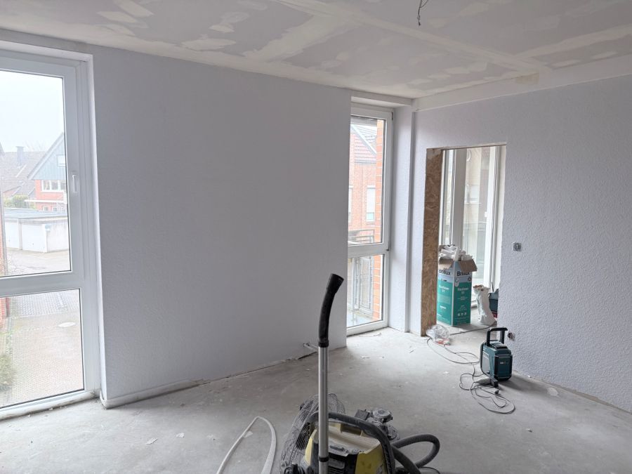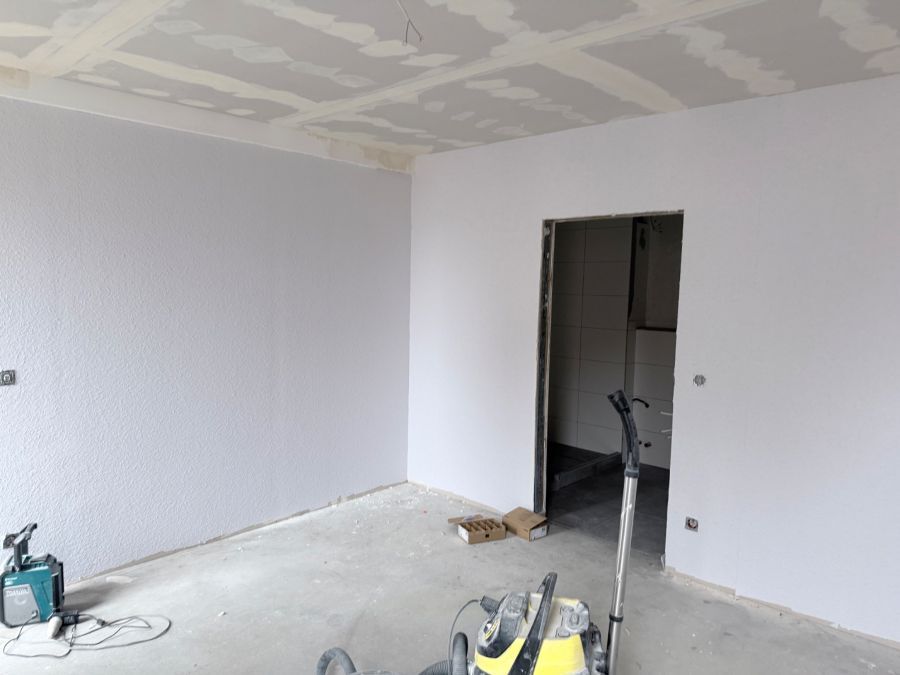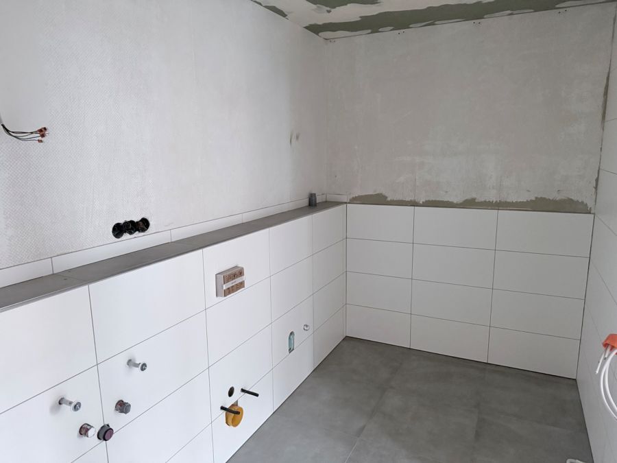 Die Wohnung hat zwei Zimmer, Bad, Gäste-WC, Abstellraum, Balkon und Keller. Es handelt sich bei den beiden Zimmern um ein Schlafzimmer und um ein Wohn- Esszimmer mit integrierter Küche. Die ist im Zuge einer Umgestaltung neu entstanden. Am Schlafzimmer ist das Badezimmer im dickten Zugang. Es besteht Anschluss für die Waschmaschine und den Trockner. Die Ausstattung ist neu und hochwertig. Im Moment wird die Wohnung fertiggestellt.