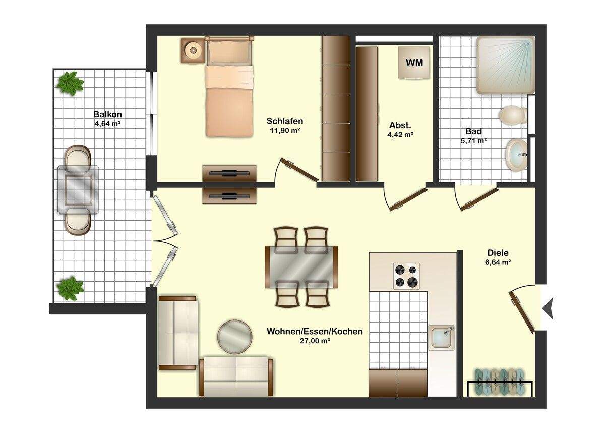 Zimmeranzahl :2 Wohnfläche :ca. 58,00 m² Baujahr :2024 Frei ab :Bezug: 01.05.2026 o. später Balkon :