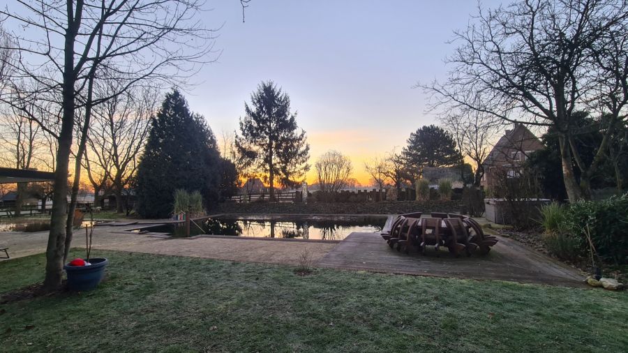 Fußbodenheizung, Fliesen, solide einbruchsichere Merantifenster, Fernwärme, Fassade in Feldbrand Verblendmauerwerk, Außenwände in Kalksandstein, tragende Innenwände in Kalksandstein, nicht tragende Wände in Ständerwerk/Gipskartonplatten, Decken in Stahlbeton örtlich vergossen und unterseitig verputzt, Wohnzimmer EG Dekobalkenlage im Deckenbereich, Tonpfannendach, massive Außentüren in Eiche u. Metall, exkl. Einbauküchen, Dachgeschoßbereiche in sichtbaren Sparren, 4 Garagen, 2 Carports, 7 PKW Stellplätze, robustes individuell geschmiedetes Eingangstor, bunter großzügiger Garten mit zahlreichen Gestaltungsmöglichkeiten, Schwimmteich, Sauna, Aufenthaltsraum, optionale Pferdehaltung, nahe liegende Pferdeweide, ca. 3, 3 Ha Pferdewiesen können dazu gepachtet werden, Photovoltaikanlage 7, 4 kWp aus 2005, verkauft werden die Wohnungen möbliert