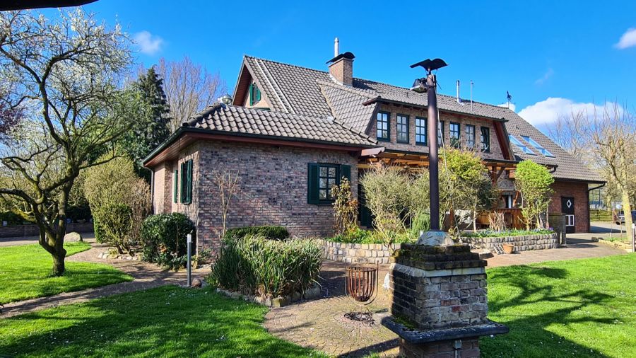 exklusives Landhaus/Mehrfamilienhaus/Resthof im herrlich grünen Außenbereich von Rees, nur wenige Minuten zum Stadtzentrum. Das Mehrfamilienhaus besteht aus 4 Einheiten, konkret 3 Eigentumswohnungen und eine Einliegerwohnung. Der Scheunentrakt / Heuboden wurde 2018 ausgebaut (Wohnung 3) Wohnung 1 + 2 wurden 1993 grundsaniert und stets modernisiert sowie renoviert. In Wohnung 1, Erdgeschoß, wurde 2013 ein neues Bad installiert, 2009 wurde die Küche erneuert, sowie Küche, Eßzimmer und Wohnzimmer zusammengelegt. Die ehem. Pferdeställe fungieren aktuell nur noch als Abstellräume, wären jedoch jederzeit wieder als Pferdestall nutzbar. In rund 30 Meter vom Grundstück entfernt befinden sich rund 10.000 qm Pferdeweiden und 5.000 qm Waldflächen, welche optional dazu erworben werden können für 250.000 , Flurstücke 73 + 92, Flur 12, Rees. Zusätzlich kann in direkter Nachbarschaft zum Haus in östlicher Richtung ein Gewerbegrundstück mit einem ehem. Pferdekarussell gepachtet oder erworben werden (Flur 11, Flurstück 312, 4.300 qm, 490.000 ) Dieses Grundstück bietet zahlreiche Nutzungsmöglichkeiten, wie Kleintierhaltung, Pferdehaltung oder den Bau einer Halle. Weitere Entfaltungsmöglichkeiten können gerne bei einem Treffen vor Ort besprochen werden. Seit 2004 werden die Wohnungen durch ein Fernwärmenetz versorgt durch einen Holzscheitkessel in der benachbarte ehem. Reithalle. Dort befindet sich ein 50 kW Holzofen in Verbindung mit einer 160 qm großen thermischen Solaranlage. 2 Gasanschlüsse sind vorhanden, so dass eine autarke Heizenergieversorgung jederzeit wieder möglich wäre, falls man sich vom Fernwärmenetz abkoppeln möchte oder man entscheidet sich für eine Wärmepumpe. In den Übergangszeiten sorgen 3 Holz- u. 1 Kachelofen in den Wohnungen für reichlich Wärme, so dass eine echte Autarkie stets gewährleistet ist. Zusätzliche Warmwasserversorgung wird stets per Durchlauferhitzer gewährleistet. Die Holzversorgung ist durch den nahe gelegenen Wald sowie immensen Holzvorrat für die nächsten Jahre stets gesichert. Verkauft wird direkt vom Eigentümer. Besichtigungen werden nach Vorlage einer aktuellen Finanzierungsbestätigung durchgeführt.