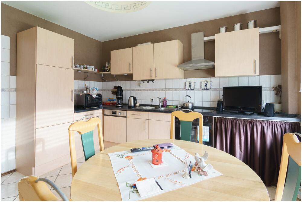 Die Hauptwohnung besticht durch ihre großzügige Raumaufteilung und bietet Ihnen 3 Zimmer. Das Wohnzimmer kann durch eine große Flügeltür mit dem Esszimmer verbunden werden, was für ein offenes und einladendes Wohngefühl sorgt. Dort ist auch bereits ein Kaminanschluss vorhanden. Die Küche verfügt über einen Essbereich und bietet ausreichend Platz für gemeinsame Mahlzeiten. Das Badezimmer ist mit einer Dusche, einer Badewanne und einem getrennten WC ausgestattet. Ein Schlafzimmer, sowie ein Abstellraum runden das Erdgeschoss ab. Zusätzlich stehen Ihnen vier großzügige Kellerräume, mit zusammen ca. 77 m² Fläche, zur Verfügung. Die ca. 9 m tiefe Garage, bietet ausreichend Platz für ihre Fahrzeuge und verfügt über einen weiteren Abstellraum. Anliegend an der Garage, direkt erreichbar über eine überdachte Terrasse, läd ein gemütliches Kaminzimmer sowie eine kleine Außenküche zu geselligen Abenden im Freien ein.