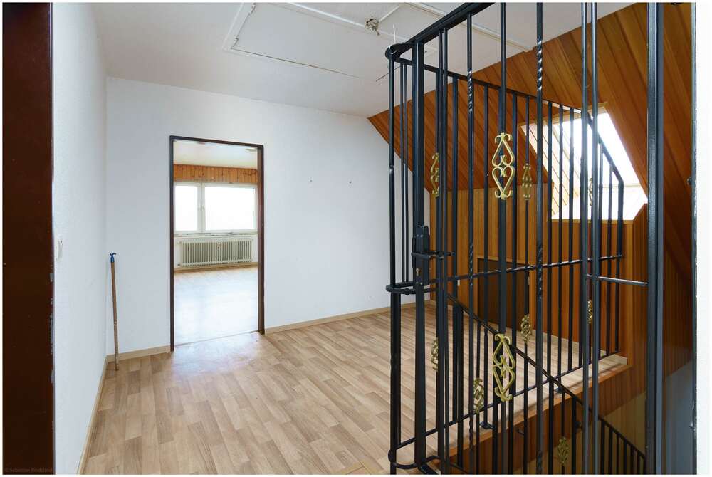 - großzügige Wohnfläche von ca. 183 m² - 3 ZKB + Abstellraum im Erdgeschoss - 3 ZKB + Abstellraum im Dachgeschoss - Esszimmer und Wohnzimmer im EG können verbunden werden - Kaminanschluss im EG-Wohnzimmer vorhanden - Großzügige Kellerräume ( ca. 77 m²) mit normaler Raumhöhe - Tiefe Garage für Ihre Fahrzeuge - Grundstück mit ca. 1.625 m² Fläche und viel Potenzial - Badezimmer und WC im EG und OG jeweils getrennt