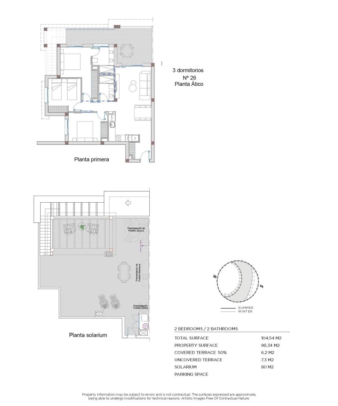 Jedes Apartment verfügt über 2-3 Schlafzimmer und 2 Badezimmer und bietet ein helles und komfortables Interieur. Darüber hinaus verfügt jede Wohnung über einen privaten Parkplatz innerhalb des Komplexes und einen Abstellraum für zusätzlichen Komfort.