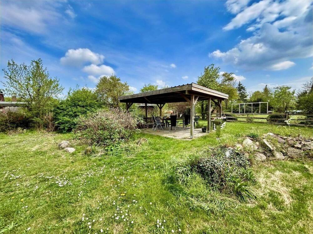 • Ansicht aus dem Garten auf Carport und kleines Nebengebäude -