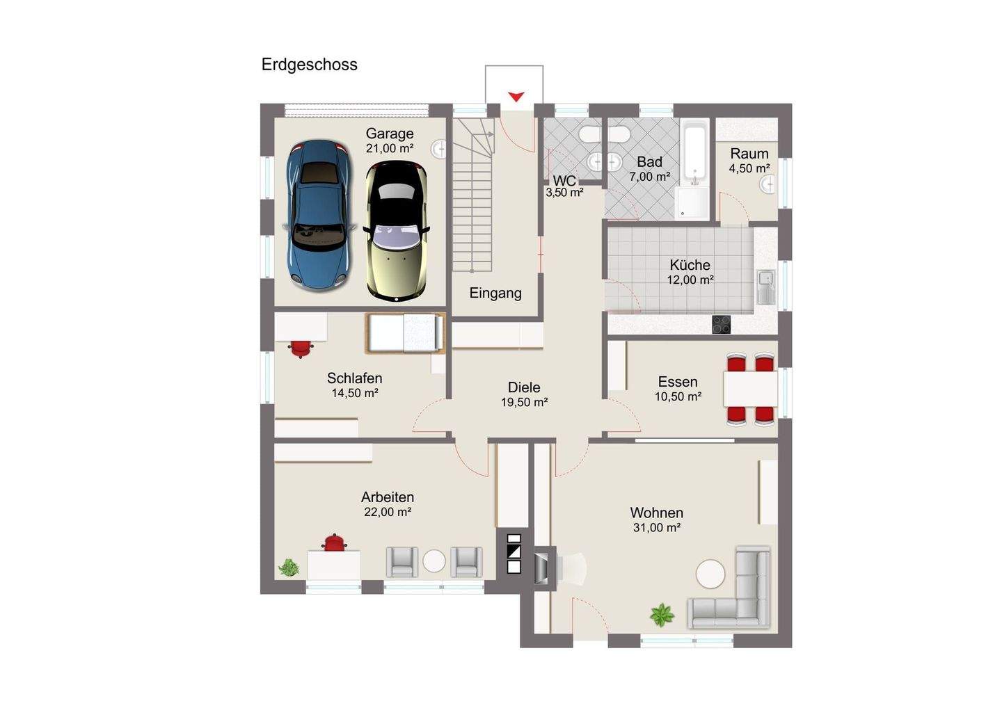 • Obergeschoss mit Mustermöblierung -