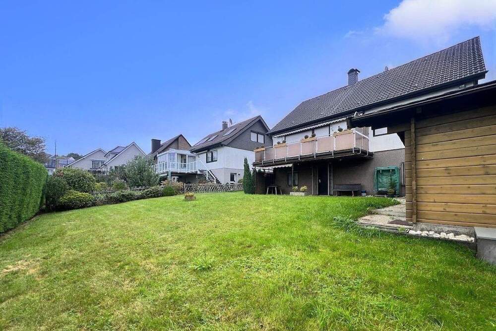 • Gartenansicht mit Blick aufs Haus - 5 Zimmer Mehrfamilienhaus, Wohnhaus zum Kaufen in Gevelsberg