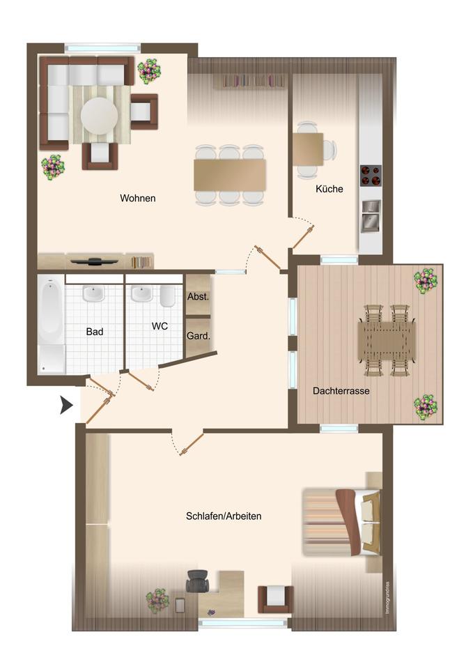 Sie befinden sich hier: Exklusive Dachgeschosswohnung mit Parkett, Ankleide, Sonnenterrasse und Garage. in Alfter - 3335018664-203-1631 | 1A-Immobilienmarkt.de