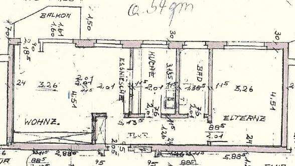 Zimmeranzahl :2 Wohnfläche :ca. 53,00 m² Baujahr :1963 Balkon :