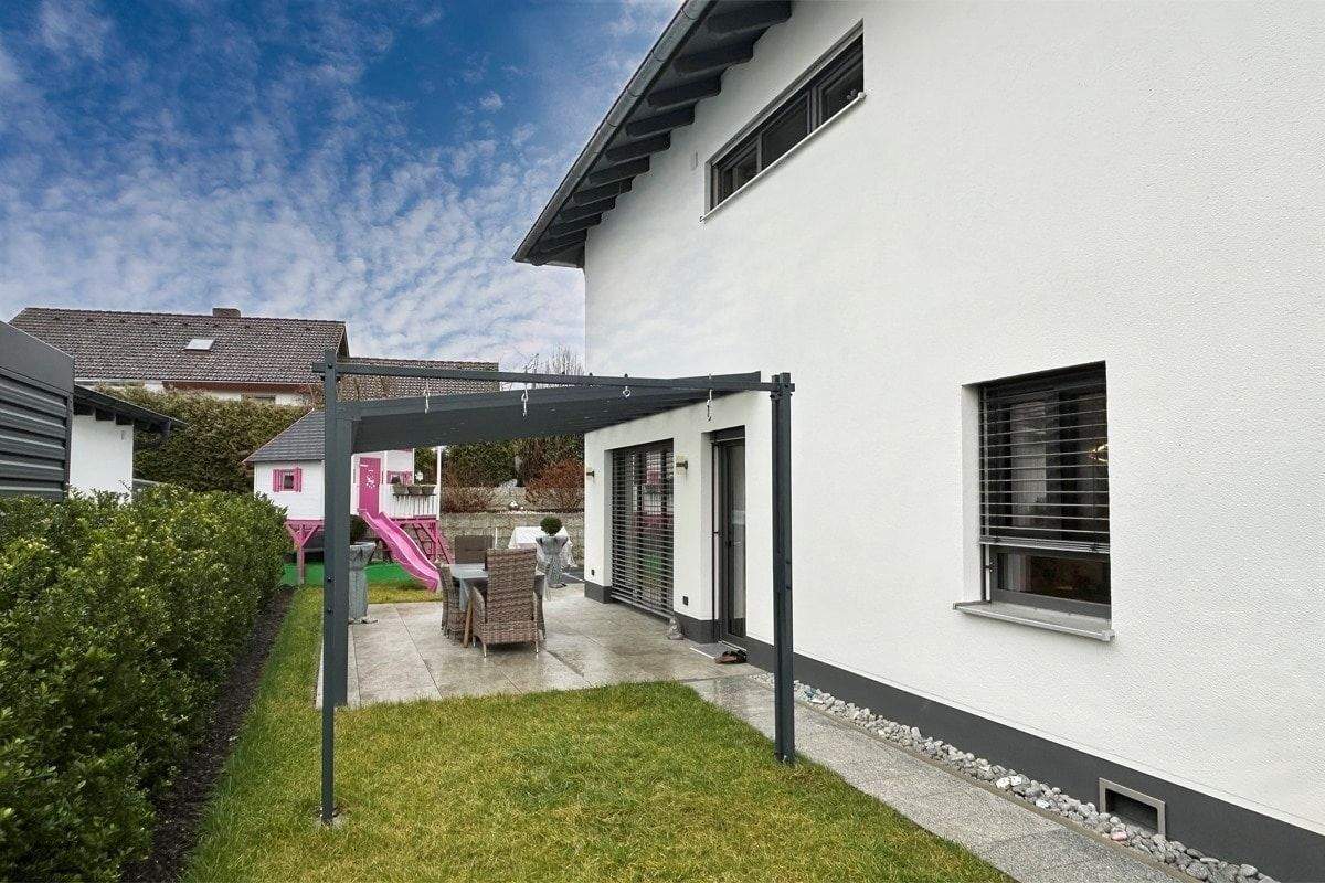 • Terrasse mit beleuchteter Überdachung -