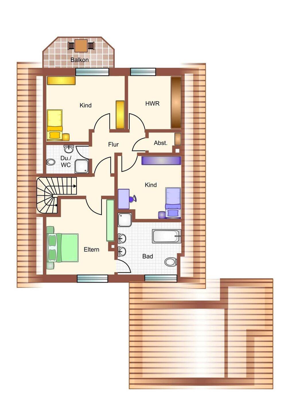 • Praktisch ist das Duschbad im Dachgeschoss -