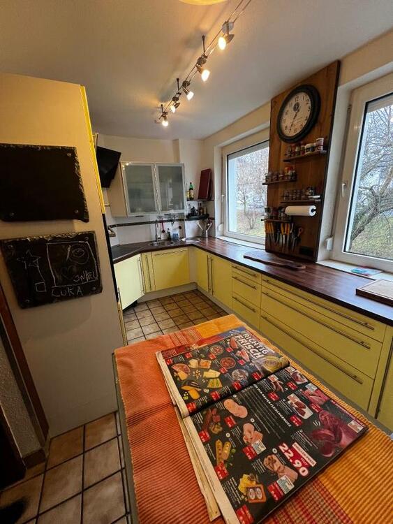Die Küche ist vom Wohnzimmer aus begehbar. Zwei Fenster sorgen für viel Tageslicht und eine angenehme Atmosphäre. Eine praktische Einbaunische kann ideal als zusätzlicher Stauraum oder Speisekammer genutzt werden.