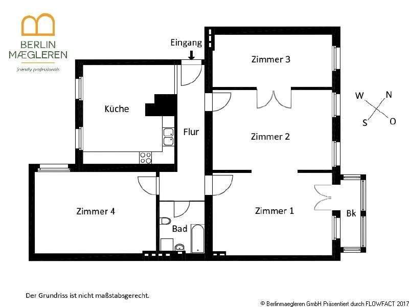 • Zimmer 1 mit balkonzugang - 4 Zimmer Etagenwohnung zum Kaufen in Berlin